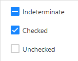 Indeterminate | BOOLEAN | < | FALSE | Indicates that the state is indeterminate. Neither Checked or Unchecked . |