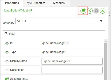 Every IQNOX widget comes with a style Configurator. Selecting an IQNOX Widget will add a button at the top of the widget properties panel.