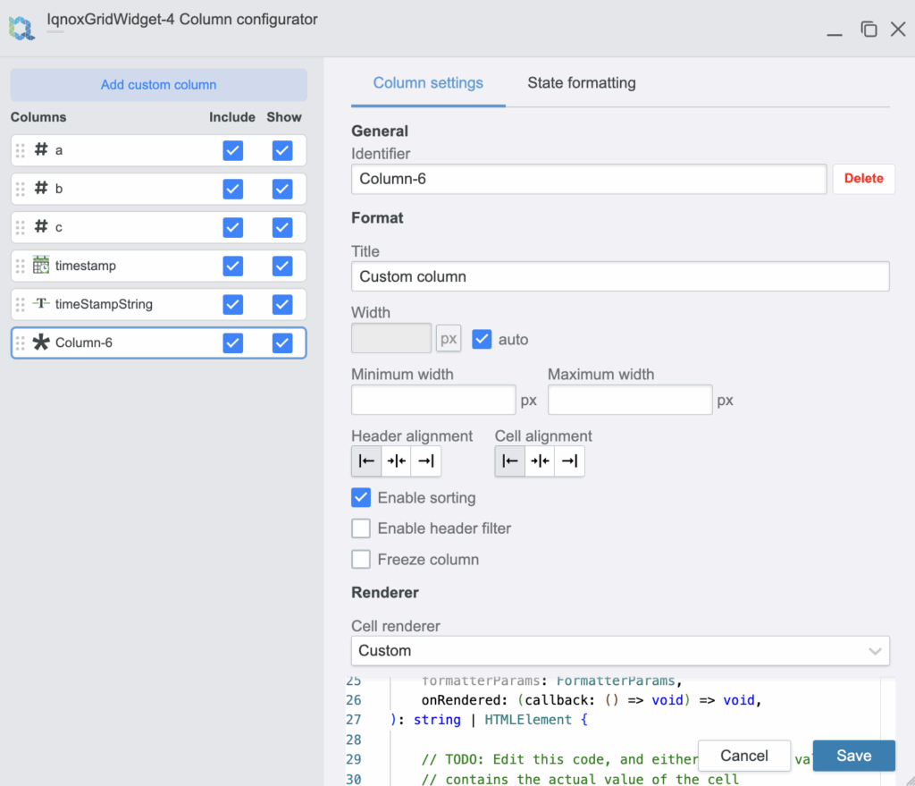 from the widget - Custom column renderer. The ability to render anything in a grid cell