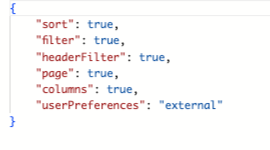 GridConfiguration | JSON | < | Saved configuration used for columns. This is not expected to be changed manually, column Configurator should be used instead. | |